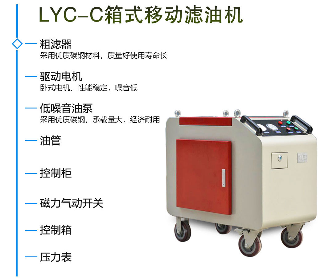 LYC-32C-箱式移動濾油機采用精制外殼包覆所有元件,保護設備免遭外界污染,尤其適應于對使用環境要求高的場合。