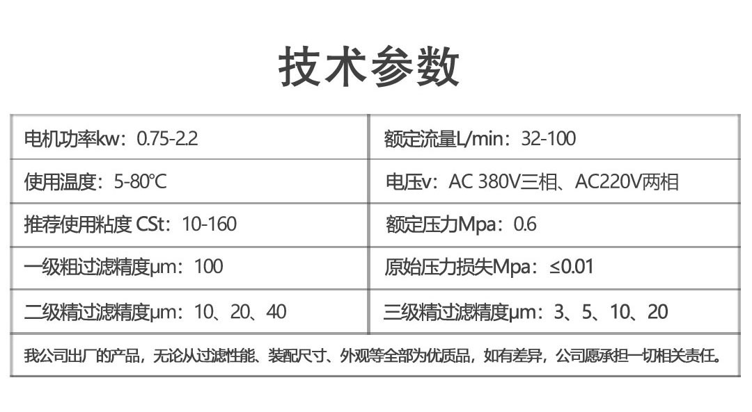 LYC-C系列箱式濾油機技術參數: