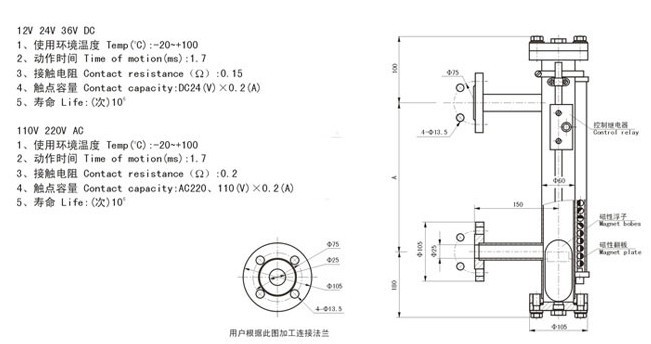 LKSI系列液位控制指示器是集液位計(目測),液位控制器(繼電器控制)之優點而開發的一種既可目測,又可控制液位的液位控制指示器,適用于敞開或封閉式容器中液位狀態的監視與控制。該液位控制指示器是以不銹鋼鋼管為主體,內裝磁性浮子、外裝目測磁性翻板指示器以及可任意調節控制點的液位控制繼電器而組成。