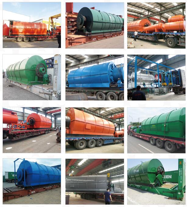 一 、廢橡膠煉油設備的工藝流程: 1、將原材料直接裝入裂解釜中,催化加熱,餾出油蒸汽,油氣經過汽包緩沖釋壓,進入冷凝器。 2、可液化部分,冷凝為燃料油,不可液化部分即同步氣體通過安全裝置水封、燃氣系統,一部分被可燃性氣體被捅入燃燒室充當燃料燒掉