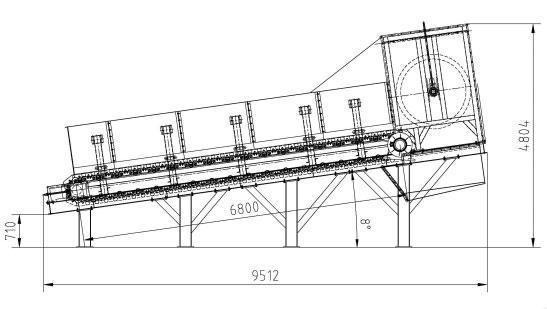 上料機構作為生活垃圾處理線的第一道工序在整條處理線中有著至關重要的作用,它決定了整條處理線的處理速度和處理量。本公司為了保證生活垃圾處理線的平穩可靠運行,為這一環節設計了專用鱗板式輸送機。