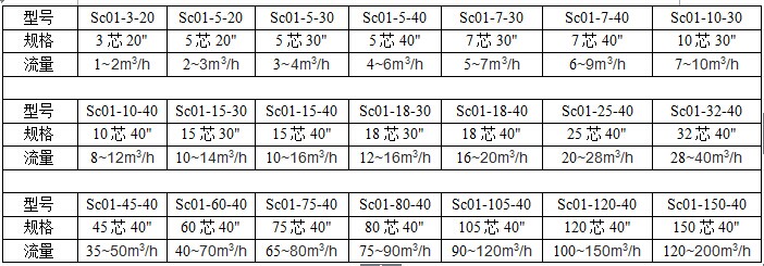2.濾芯長度:單節、二節、三節、四節(每10″為一節);