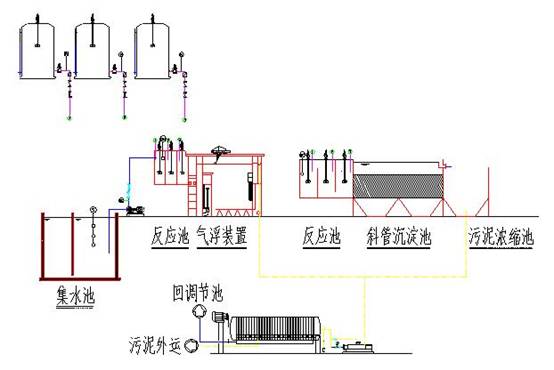 電鍍廢水處理設(shè)備由調(diào)節(jié)池、加藥箱、還原池、中和反應(yīng)池、pH調(diào)節(jié)池、絮凝池、斜管沉淀池、廂式壓濾機、清水池、氣浮反應(yīng)、活性炭過濾器等組成。