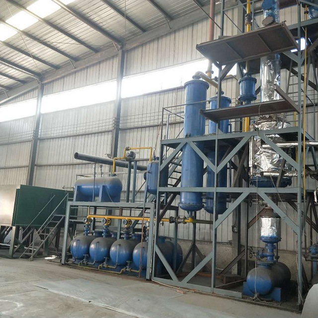原油蒸餾設(shè)備簡介: 廢機(jī)油、潤滑油、毛油等通過催化裂解和高溫蒸餾的技術(shù)可以轉(zhuǎn)化為更高價值的柴油。它是基于沸騰液體的基礎(chǔ)上,根據(jù)不同混合物的揮發(fā)程度將不同的成分分離出來。經(jīng)過高溫蒸餾過后產(chǎn)出的油品會有比較深的顏色和難聞的氣味,因此我們建議將蒸