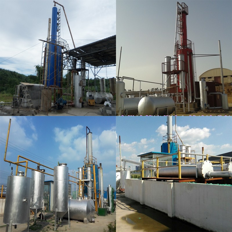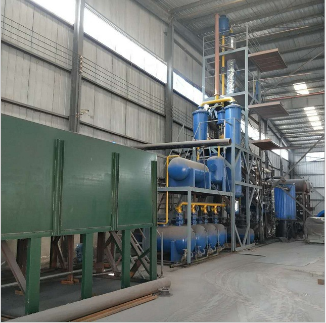 將廢油加入蒸溜反應釜內加熱,通過先進的蒸溜,精溜,閃蒸等工藝,餾出油蒸汽,面后油蒸氣通過冷凝器,分餾出基礎燃料油,經調和后成為合格的燃油。